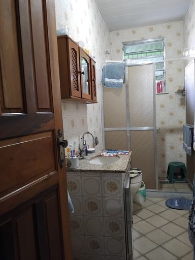 Uma Quitinete com 1 Quato, Sala, Banheiro, Cozinha e Varanda.